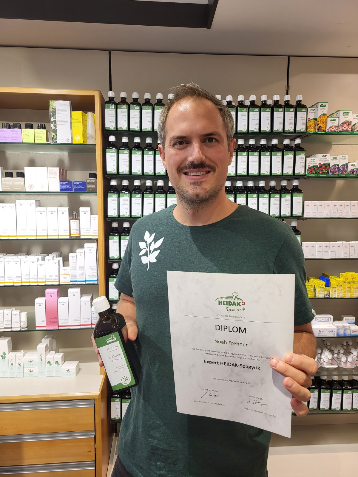 Noah hat den Lehrgang „Experte in Spagyrik“ erfolgreich abgeschlossen – die höchste Ausbildung unseres Partners Heidak AG.